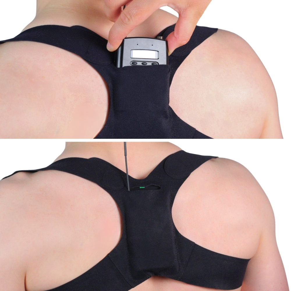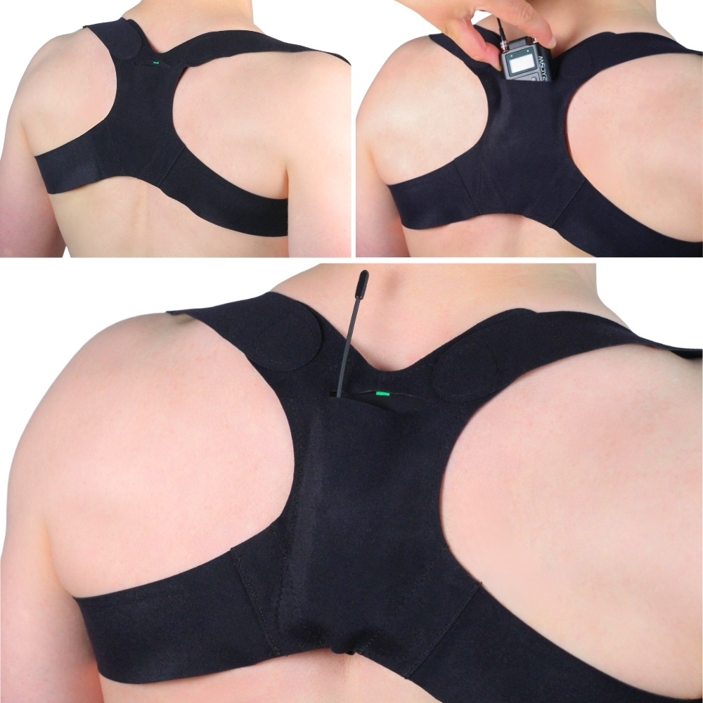 Ten pas umożliwia bezpieczne przymocowanie mikroportu na plecach, pomiędzy łopatkami. Średni rozmiar pasuje do klatki piersiowej o wymiarze 36-40 cali. Duży pasuje do klatki piersiowej 41-45 cali. Rozmiar można regulować paskami na rzepy. Nadajnik można zamontować anteną skierowaną w dół lub do góry. Pasuje do wszystkich rozmiarów nadajników / odbiorników.